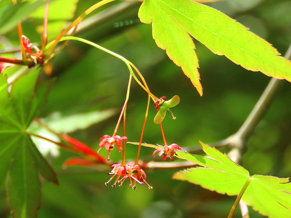 オオモミジの花/雌花から種子が出来はじめています。