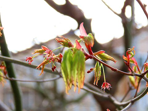 イロハモミジの花は、新葉の展開と同時に開花します。