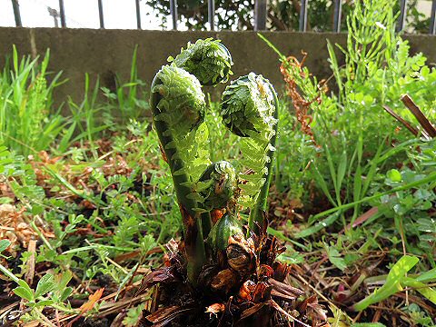 クサソテツ(コゴミ)が新芽を伸ばし始めました。食べごろです (^^)