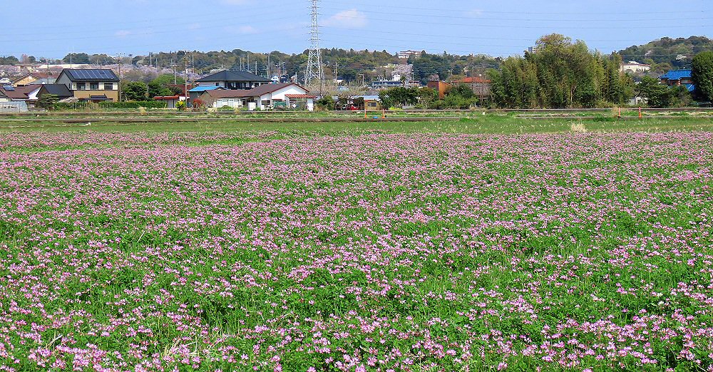 相模川沿いの水田では『れんげ草』の絨毯が見られるようになりました。