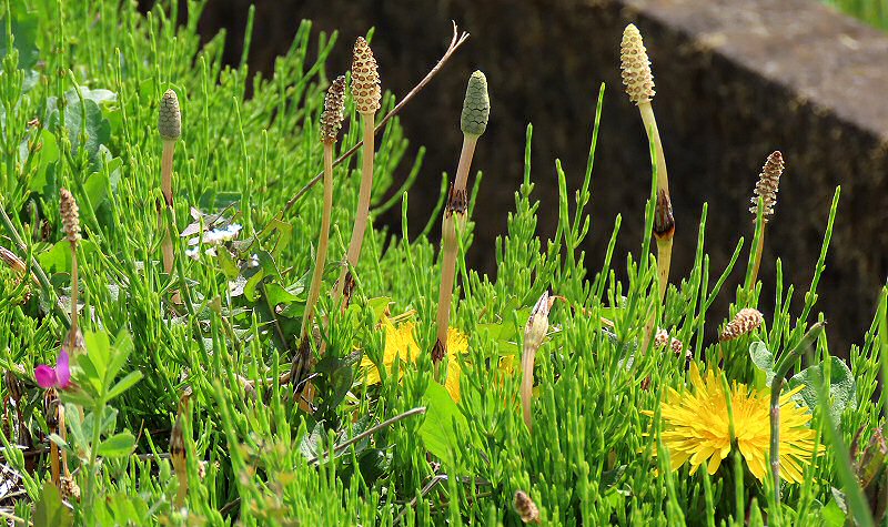 スギナ(栄養茎と胞子茎)、カラスノエンドウ、セイヨウタンポポ