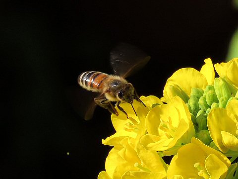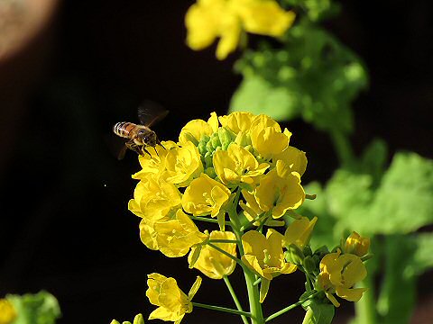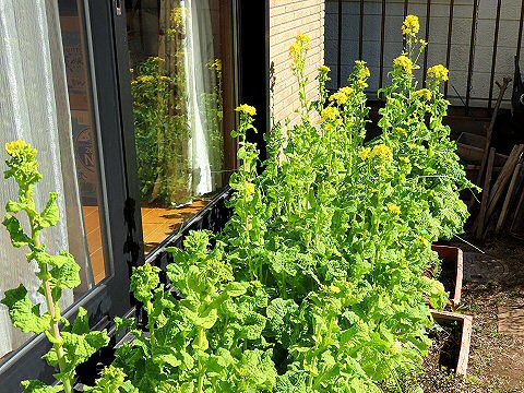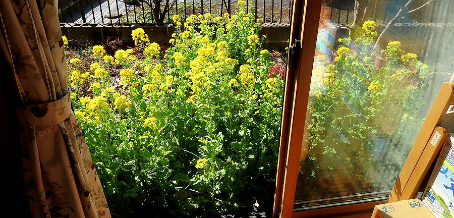 庭の菜の花にも沢山のミツバチがやって来てブンブン飛びまわっています。