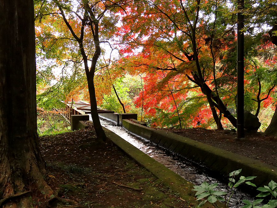 桂川から取水された水路が小佐野分水所を通り、東海自然歩道に沿って北上しています。