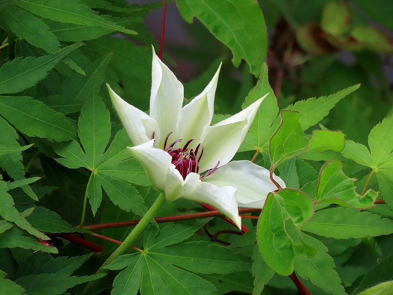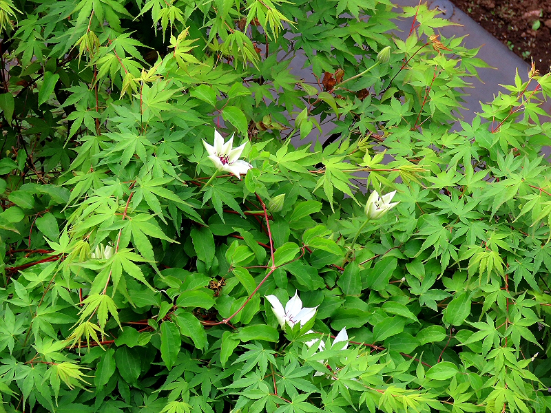 蔓はヤマモミジに絡んでいて、天辺あたりまで伸びています。