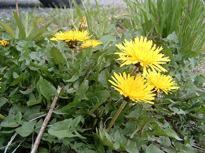 -(121 KB)道端にはセイヨウタンポポが可憐に咲いています。愛車のタイヤが見えますか?(笑)