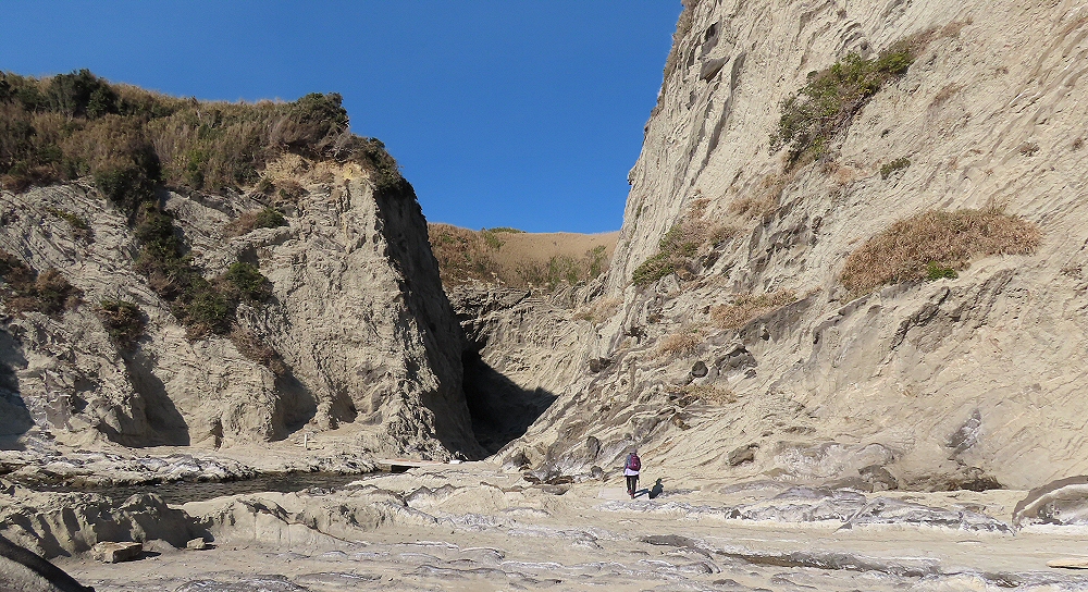 恐ろしい断崖(高さ約30メートル)と怒涛のさか巻に、ぞくぞくと身震いして足がすくんで