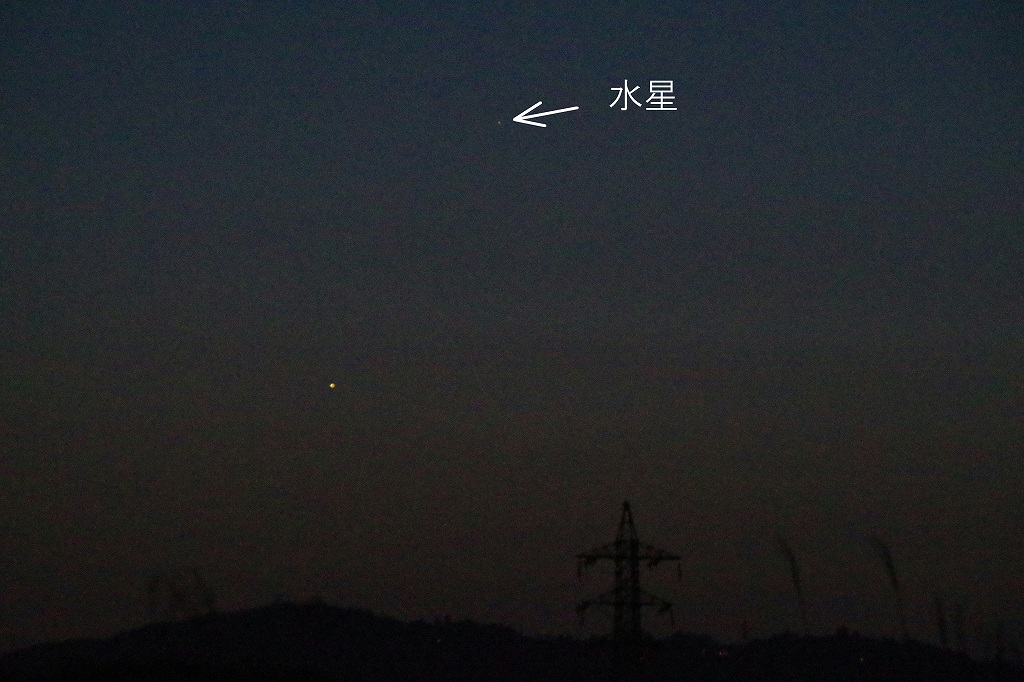 3月4日にも同じ場所で見たのですが,そのときより高度は高くなっているけれど,だいぶ暗くなっています。16日がもっとも高度が高くなる最大離角なのでこの時期を逃さず水星を探すと意図思います。